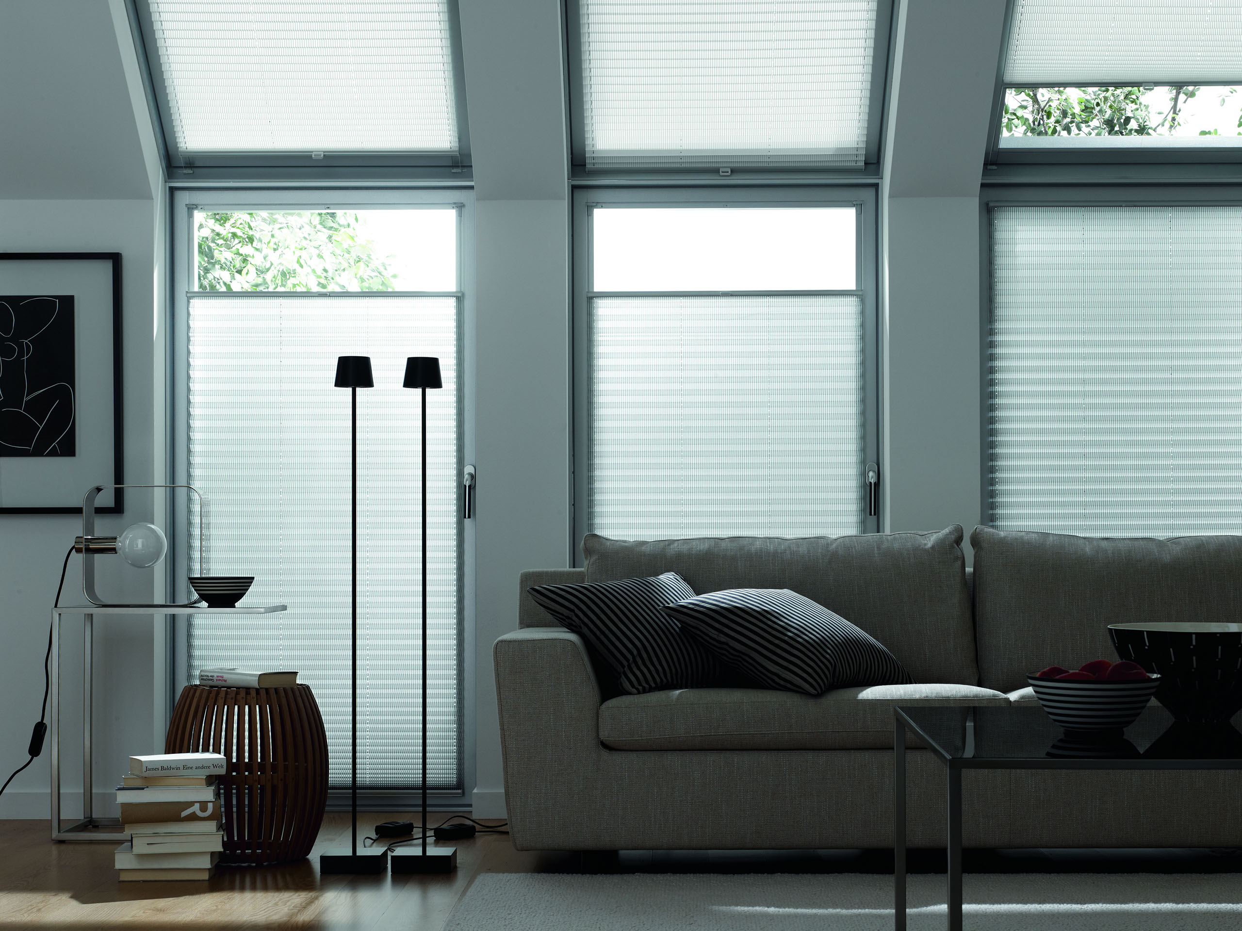 Für außergewöhnliche Fensterformen und Dachfenster bieten Plissee-Vorhänge die maßgeschneiderte Lösung, da sie sich überall perfekt anpassen. Dabei tritt die Plissee-Vorhang-Technik gekonnt in den Hintergrund und unterstreicht die optische Wirkung des Behangs.
